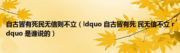 关于自古皆有死民无信则不立,ldquo 自古皆有死 民无信不立 rdquo 是谁说的这个很多人还不知道,今天菲菲来为大家解答以上的问题,现在让我们一起来看看吧!