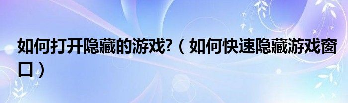 如何打开隐藏的游戏?(如何快速隐藏游戏窗口)