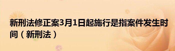 关于新刑法修正案3月1日起施行是指案件发生时间,新刑法这个很多人还不知道,今天菲菲来为大家解答以上的问题,现在让我们一起来看看吧!