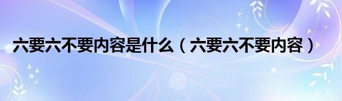 关于六要六不要内容是什么,六要六不要内容这个很多人还不知道,今天菲菲来为大家解答以上的问题,现在让我们一起来看看吧!