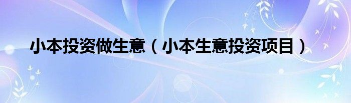 关于小本投资做生意,小本生意投资项目这个很多人还不知道,今天菲菲来为大家解答以上的问题,现在让我们一起来看看吧!