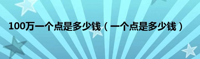 关于100万一个点是多少钱,一个点是多少钱这个很多人还不知道,今天菲菲来为大家解答以上的问题,现在让我们一起来看看吧!