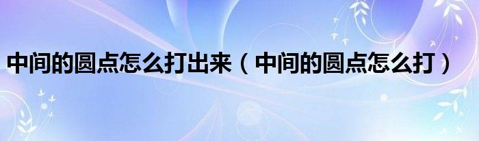 关于中间的圆点怎么打出来,中间的圆点怎么打这个很多人还不知道,今天菲菲来为大家解答以上的问题,现在让我们一起来看看吧!