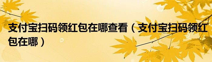 大家好,小晋来为大家解答以下问题,关于支付宝扫码领红包在哪查看,支付宝扫码领红包在哪很多人还不知道,今天让我们一起来看看吧!