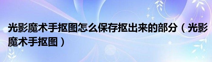 大家好,来宝来为大家解答以下问题,光影魔术手抠图怎么保存抠出来的部分,光影魔术手抠图很多人还不知道,今天让我们一起来看看吧!