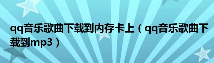 qq音乐歌曲下载到内存卡上(qq音乐歌曲下载到mp3)