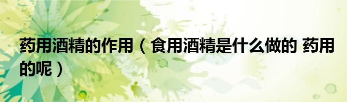 关于药用酒精的作用,食用酒精是什么做的 药用的呢这个很多人还不知道,今天菲菲来为大家解答以上的问题,现在让我们一起来看看吧!