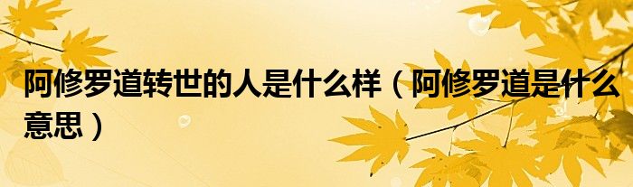 关于阿修罗道转世的人是什么样,阿修罗道是什么意思这个很多人还不知道,今天菲菲来为大家解答以上的问题,现在让我们一起来看看吧!