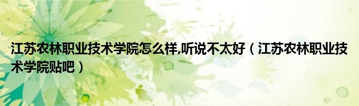 江苏农林职业技术学院怎么样,听说不太好(江苏农林职业技术学院贴吧)