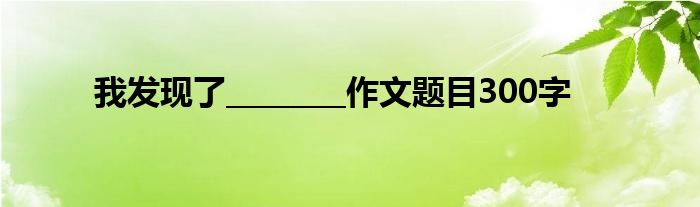 关于我发现了________作文题目300字这个很多人还不知道,今天菲菲来为大家解答以上的问题,现在让我们一起来看看吧!