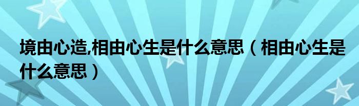 关于境由心造,相由心生是什么意思,相由心生是什么意思这个很多人还不知道,今天菲菲来为大家解答以上的问题,现在让我们一起来看看吧!