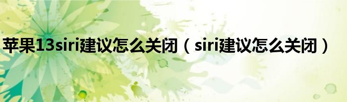 苹果13siri建议怎么关闭(siri建议怎么关闭)