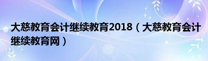 关于大慈教育会计继续教育2018,大慈教育会计继续教育网这个很多人还不知道,今天菲菲来为大家解答以上的问题,现在让我们一起来看看吧!