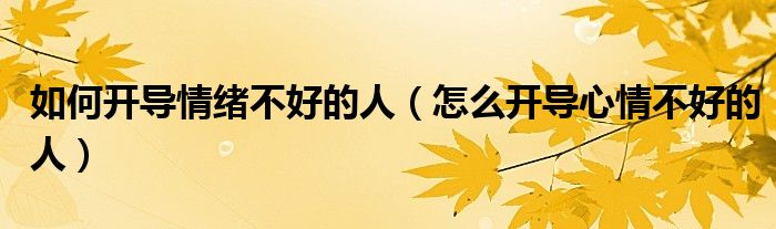 关于如何开导情绪不好的人,怎么开导心情不好的人这个很多人还不知道,今天菲菲来为大家解答以上的问题,现在让我们一起来看看吧!
