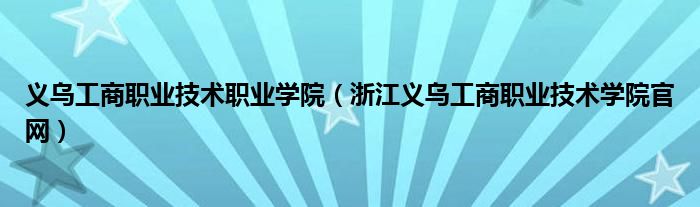 关于义乌工商职业技术职业学院,浙江义乌工商职业技术学院官网这个很多人还不知道,今天菲菲来为大家解答以上的问题,现在让我们一起来看看吧!