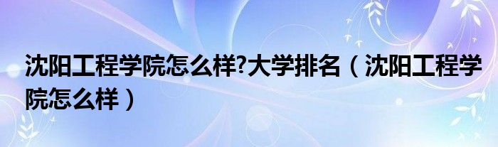 关于沈阳工程学院怎么样?大学排名,沈阳工程学院怎么样这个很多人还不知道,今天菲菲来为大家解答以上的问题,现在让我们一起来看看吧!