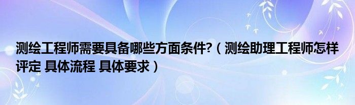 关于测绘工程师需要具备哪些方面条件?,测绘助理工程师怎样评定 具体流程 具体要求这个很多人还不知道,今天菲菲来为大家解答以上的问题,现在让我们一起来看看吧!