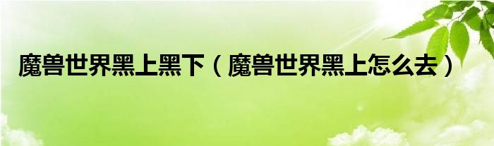 关于魔兽世界黑上黑下,魔兽世界黑上怎么去这个很多人还不知道,今天菲菲来为大家解答以上的问题,现在让我们一起来看看吧!