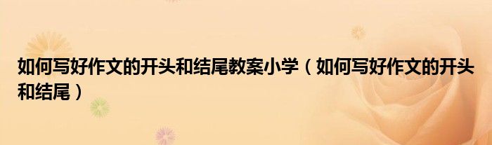 关于如何写好作文的开头和结尾教案小学,如何写好作文的开头和结尾这个很多人还不知道,今天菲菲来为大家解答以上的问题,现在让我们一起来看看吧!