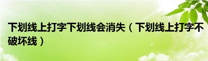 大家好,小晋来为大家解答以下问题,关于下划线上打字下划线会消失,下划线上打字不破坏线很多人还不知道,今天让我们一起来看看吧!